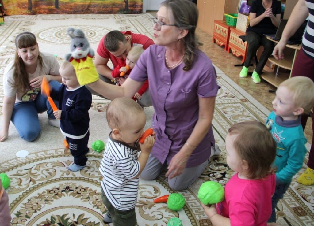 Познакомившись с веселым зайчишкой и неуклюжим медвежонком, малыши познавали окружающий мир: гладили и кормили их, играли и танцевали с ними.